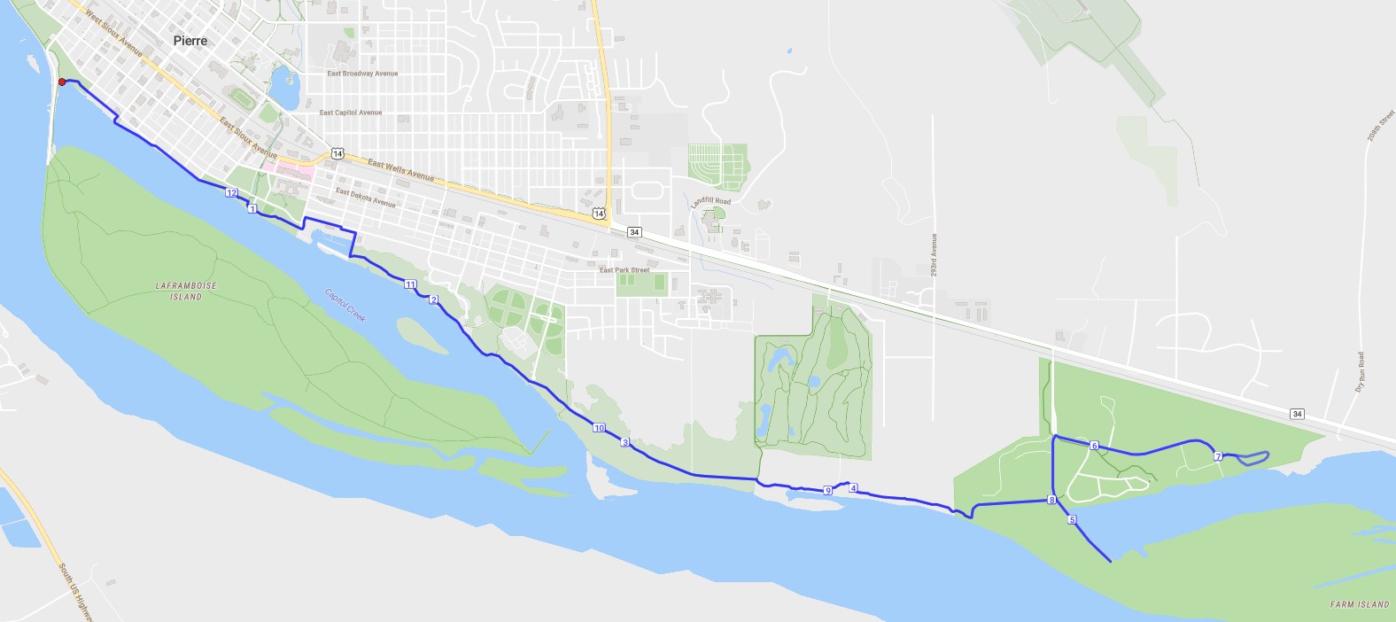 • The course is mostly flat and out-and-back, starting with a short loop at LaFramboise Island and turning around at Farm Island. The course is paved and hard-packed trails.